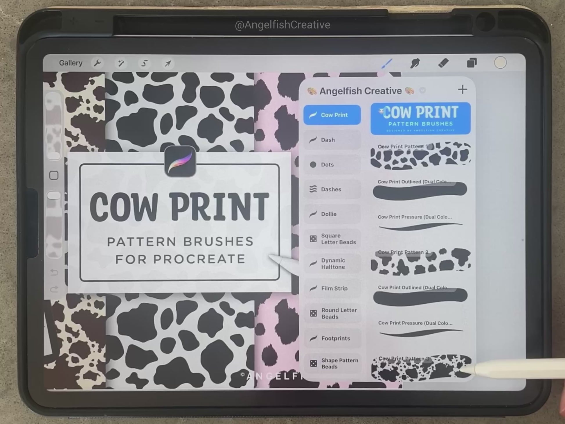 'COW PRINT' Pattern Brush Set for the Procreate App on iPad.