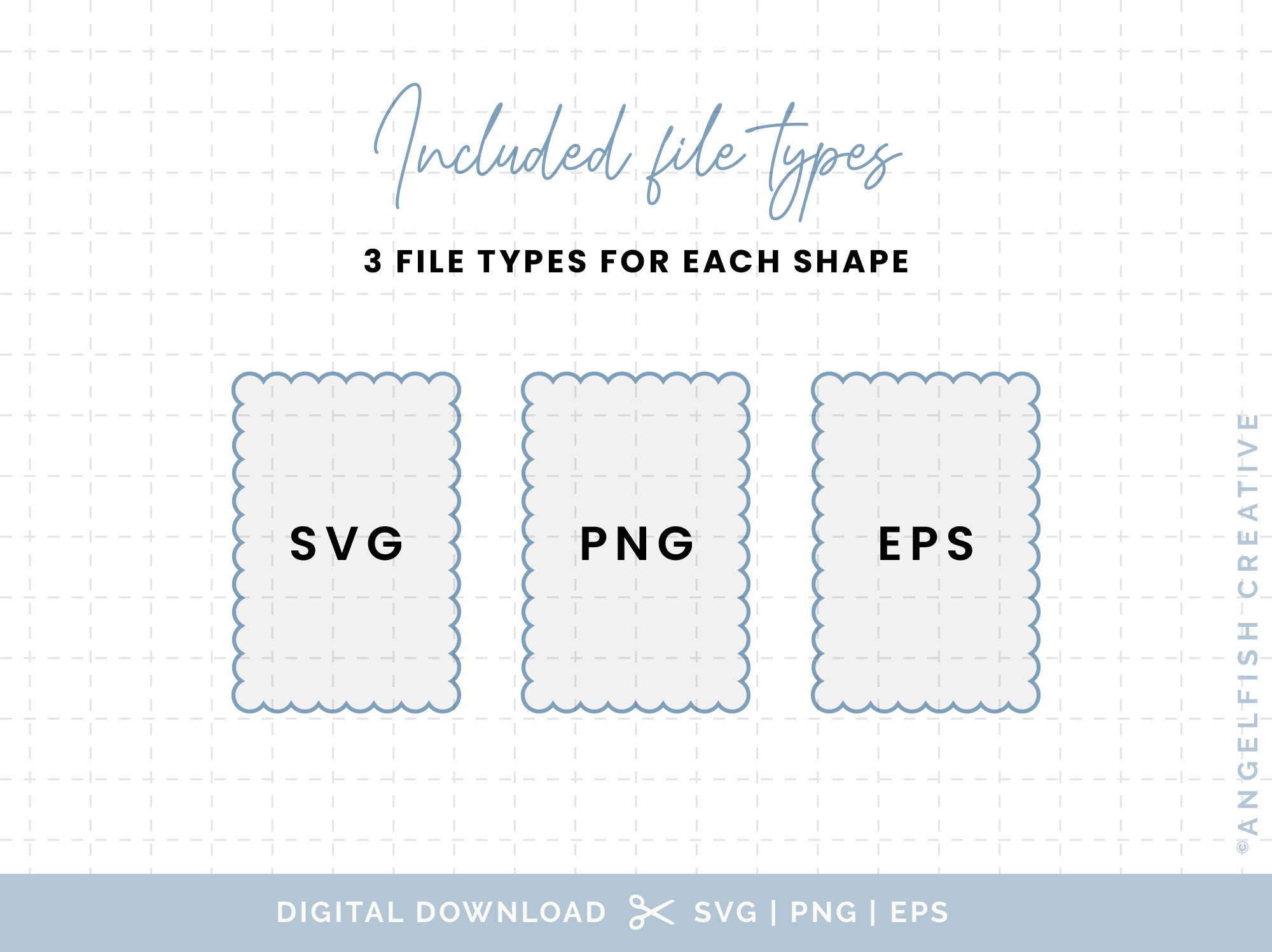 These files are for personal or small home business use only. Do not claim these SVG/PNG/EPS files as your own, copy, alter, share or resell these files in any form. Copyright stays with Angelfish Creative. You can view the full Creative License included with this product here.
