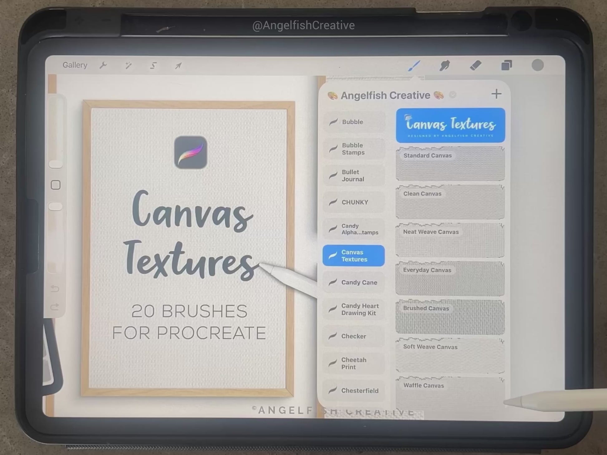 'CANVAS TEXTURES' Brush Set for the Procreate App on iPad.