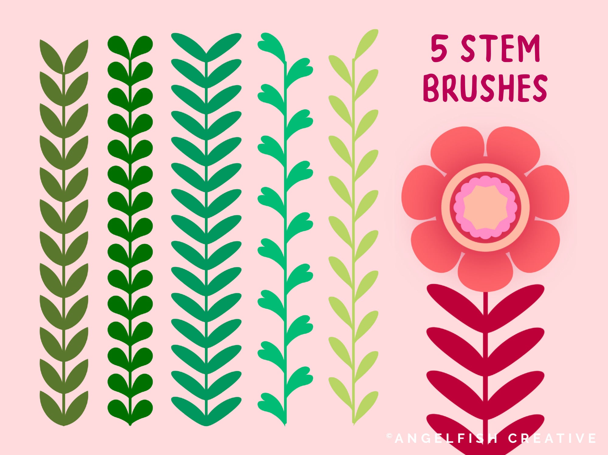 The set includes 120 flower stamp shapes, plus shadow and stem brushes to create your very floral garden.