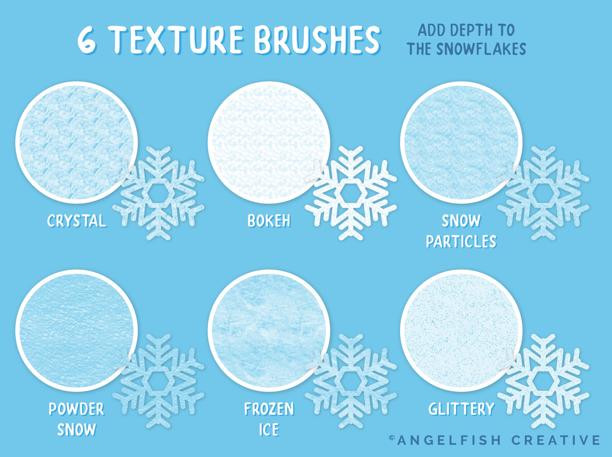 Create your own icy delights with our Snowflakes Stamps Brush Set for Procreate. The set includes 100 stamp shapes, plus texture and decorating brushes to style your very own snowflakes!