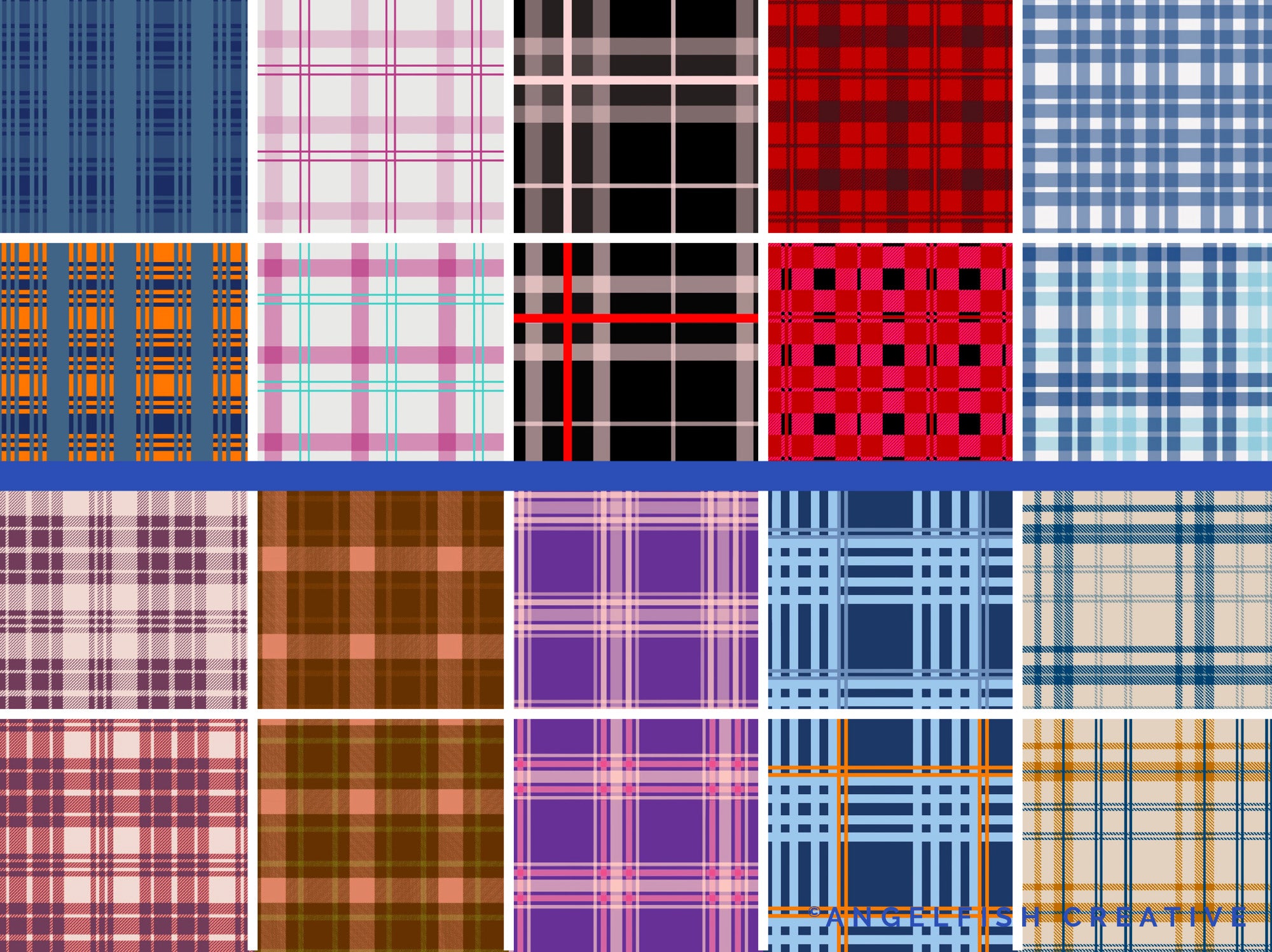 Create checkered patterns with ease, with our PLAI D PATTERNS brush set - featuring a range of gingham, check and tarten seamless patterns. There are 50 single colour brush versions, plus 50 dual colour brushes which allow you to create a multi-colour plaid pattern in 1 brush stroke!